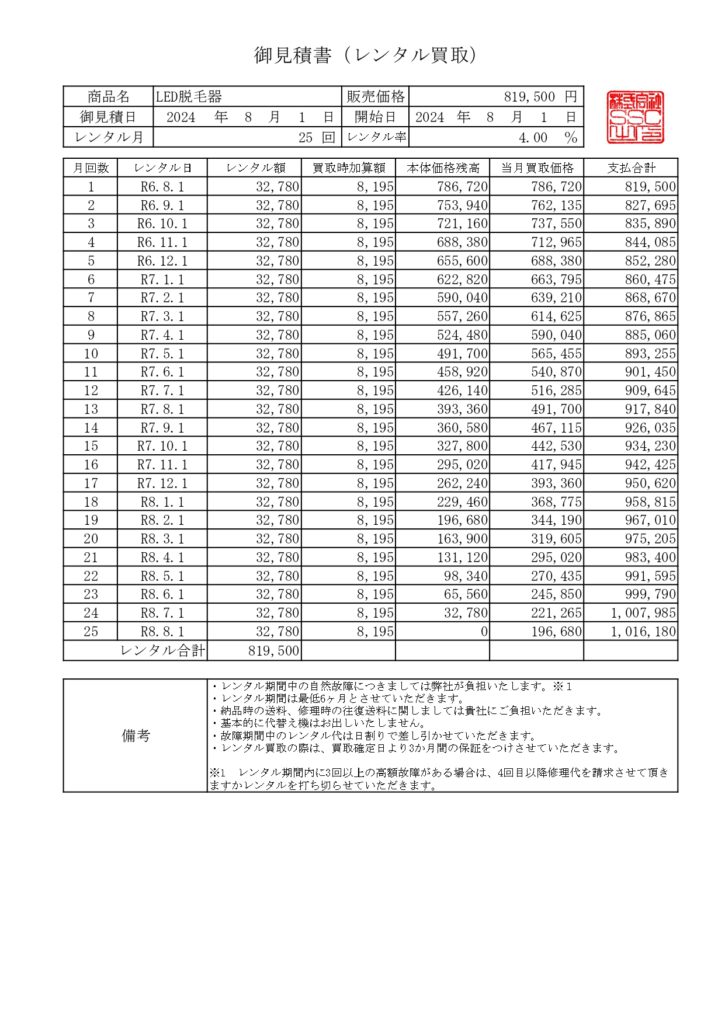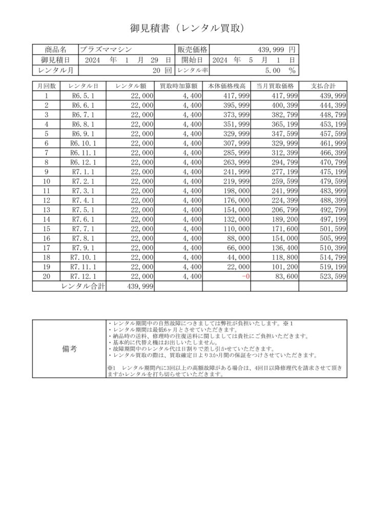 これは、弊社の最新の美容機器を低価格でレンタルしていただき、