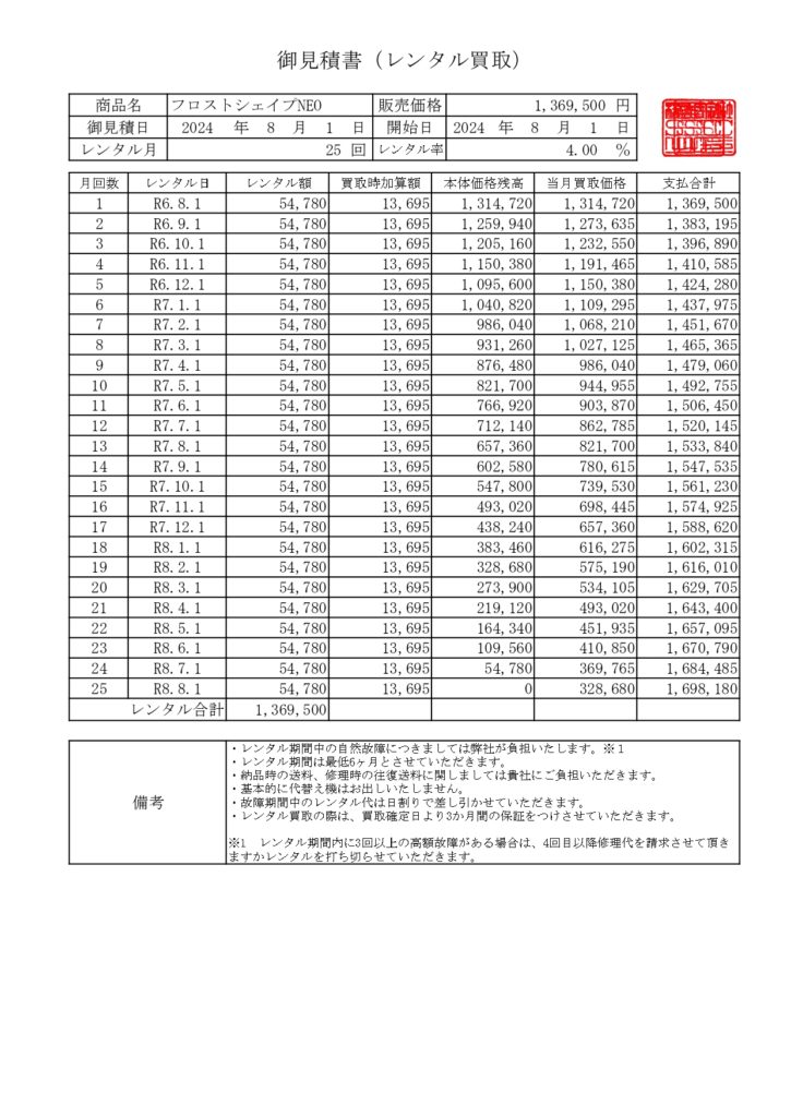レンタルを続けていただいてトレンドがまだ続くようでしたらオーナー様のタイミングで、機器を買取していただいて構いません。